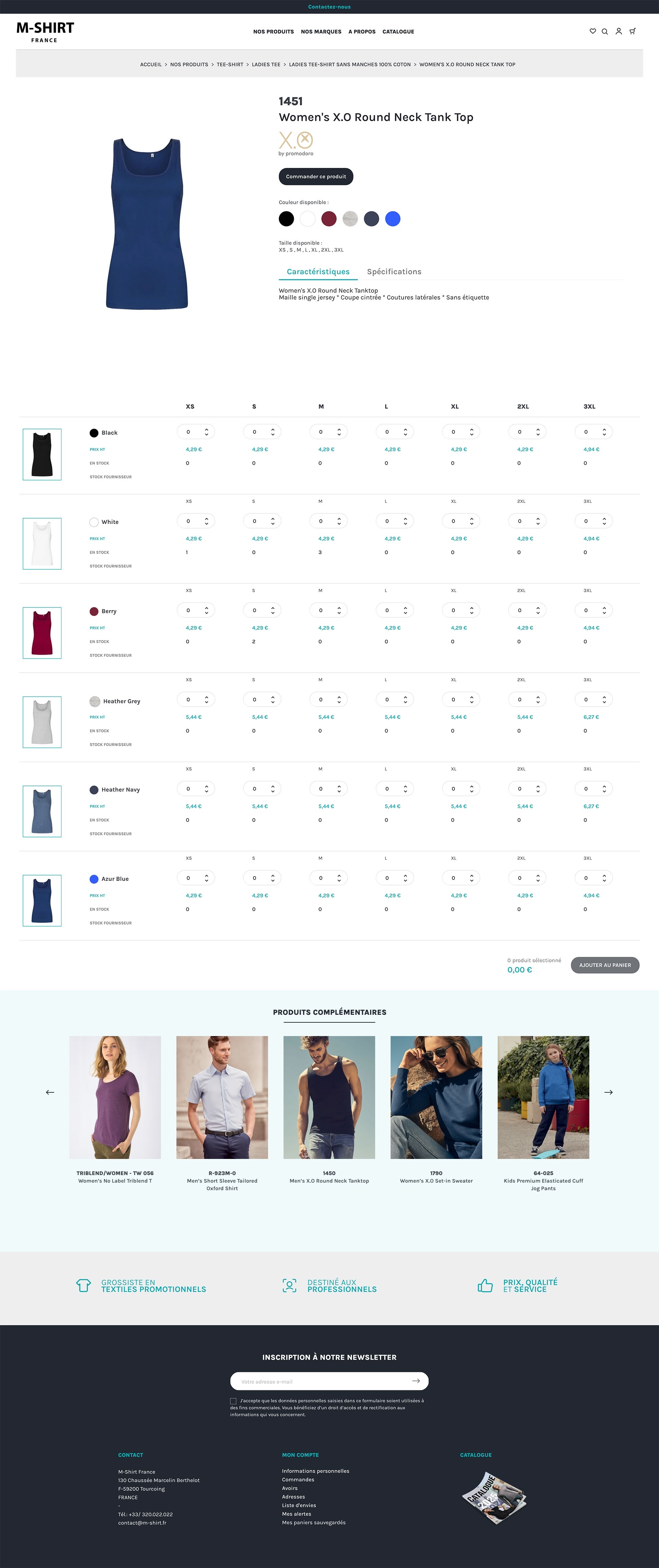 Depuis plus de 25 ans, l’entreprise M-Shirt s’est spécialisée dans la distribution de vêtements publicitaires, professionnels et sportifs en France. Elle accompagne les revendeurs dans leurs projets de personnalisation textile et de communication visuelle, en leur proposant un large choix de produits. Soucieuse de moderniser sa plateforme e-Commerce, M-Shirt a sollicité WebXY pour la réalisation d’un nouveau site PrestaShop BtoB.