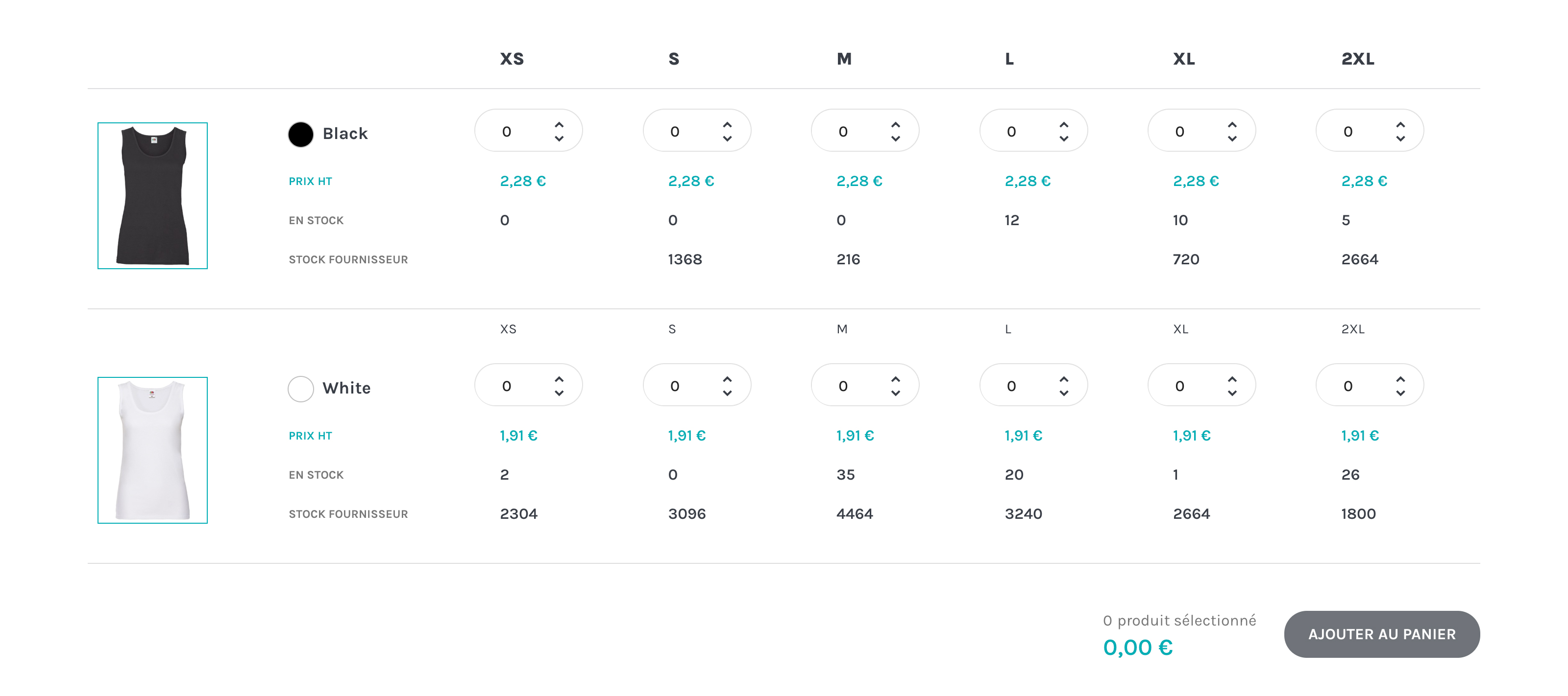 Avec plus de 40 000 références, le site offre une navigation optimisée, facilitée par un affichage des déclinaisons sous forme de tableau de commande rapide, particulièrement apprécié des clients réalisant des achats en gros volumes.